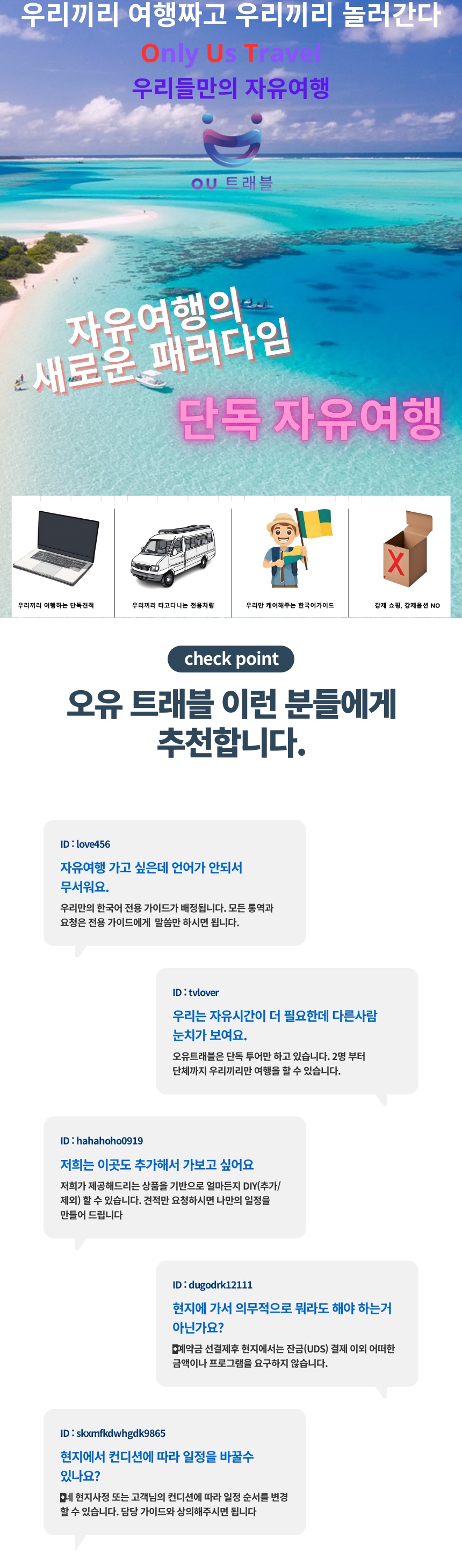 단체 관광이 아닌, 우리끼리만 떠나는 단독 맞춤형 자유여행입니다! 🏝️